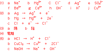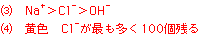 (3) 塩化物イオン…イ 水酸化物イオン…ウ