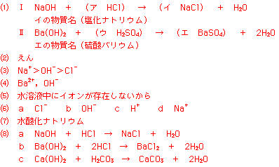 (4) ア H+ イ 水酸化物 ウ OH- エ 水 オ 中和